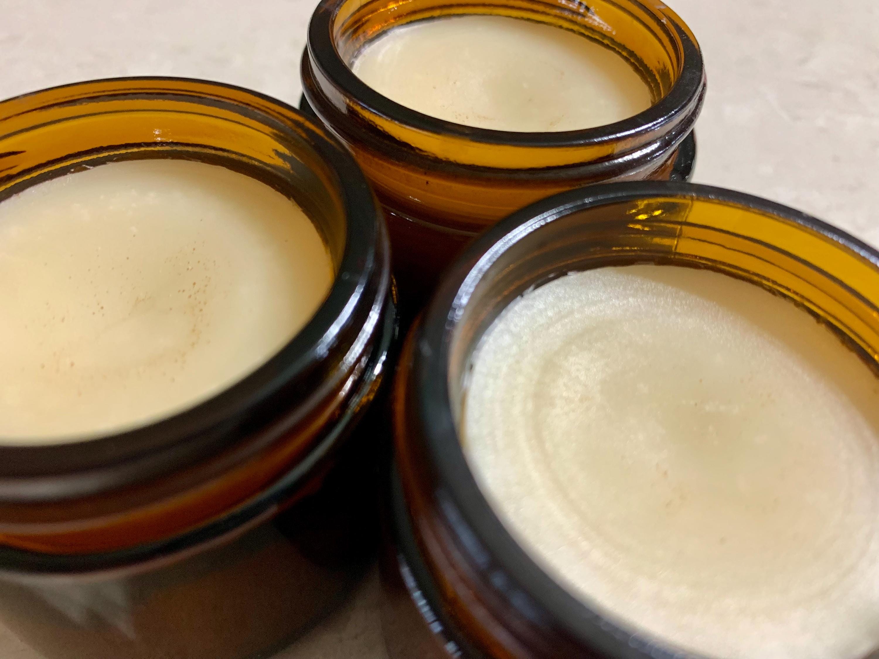 Our full size products are always packed in amber glass jars (this helps block UV rays and preserves the shelf life of your product). No plastic containers (besides the lid).